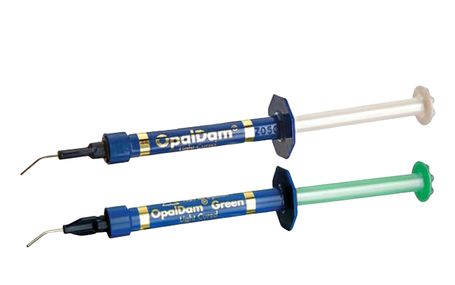 Igualmente, OpalDam sirve para proteger tejidos duros y blandos al aplicar técnicas como el arenado o el grabado con ácidos fuertes (p. ej., técnicas de reparación de porcelana), así como para sellar o fi jar un dique de goma.