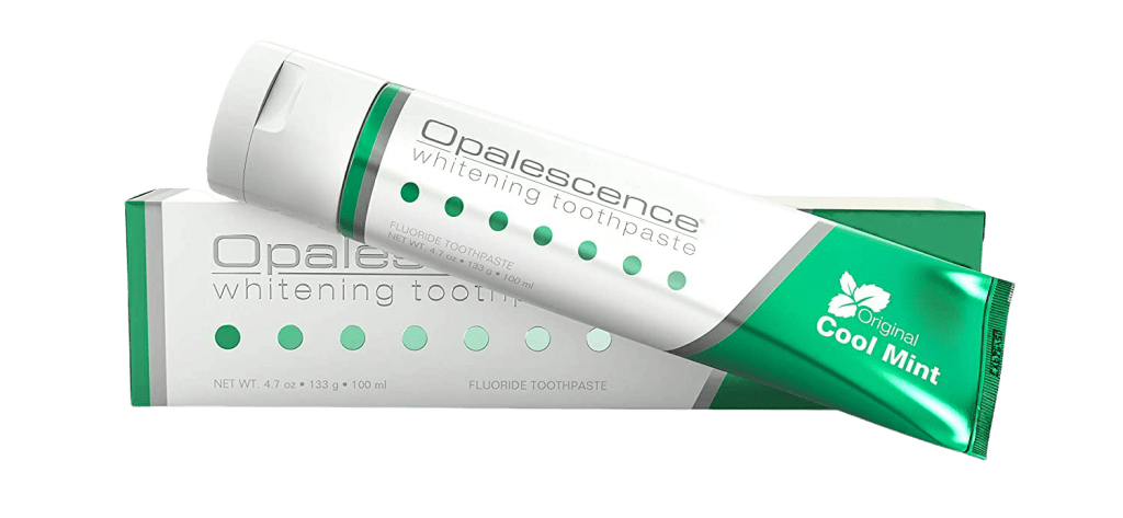 La pasta de dientes blanqueadora Opalescence es excelente para aquellos pacientes que deseen conservar el tono de sus dientes blanqueados. Su fórmula exclusiva ofrece los menores valores abrasivos y maximiza la retención de flúor por el esmalte. Contiene 0,25% de fluoruro de sodio (que corresponde a aprox. 1100 ppm de iones de flúor). Elimina las manchas superficiales, aclarando las piezas dentarias dos tonos en sólo un mes y reduce la gingivitis.