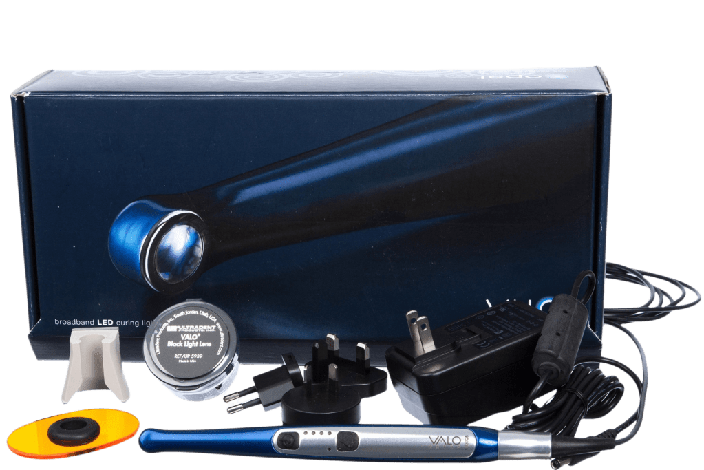 La lámpara de curado con cable VALO Ortho utiliza un diodo emisor de luz (LED) de longitud de onda múltiple personalizado para producir la luz de alta intensidad a 385-515nm capaz de polimerizar todos los materiales dentales fotopolimerizables. Esta intensidad también penetrará en la porcelana y es capaz de curar cementos de resina subyacentes similares a una luz halógena de calidad. La lámpara VALO Ortho alámbrica tiene una fuente de alimentación de grado médico internacional y es adecuada corrientes de 100 a 240 voltios. La pieza de mano está diseñada para apoyarse en un soporte de unidad dental estándar o puede montarse a la medida utilizando el soporte incluido en el kit.