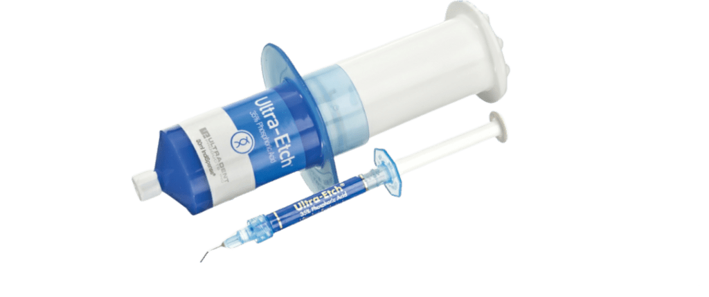 Ultra-Etch es un gel viscoso de ácido fosfórico al 35%, idóneo para el “grabado total”, que, durante años, ha sido el más popular del mercado.Ultra-Etch es lo suficientemente viscoso como para permanecer en su sitio si se aplica sobre una superficie vertical. No obstante, es capaz de penetrar en las fisuras o superficies oclusales más ínfimas debido a propiedades físicas y químicas que promueven la acción capilar. Está diseñado para una eliminación rápida y completa mediante su enjuague con spray de agua. Los odontólogos pueden elegir entre distintos modelos de puntas para una aplicación precisa: tanto la punta Blue Micro Tip, ideal para un grabado por puntos o lineal, como la punta Inspiral Brush Tip, diseñada para superficies y fisuras, facilitan una aplicación precisa y un control superior. Ultra-Etch cuenta con un autolímite de profundidad de grabado sobre la dentina único en su especie. Esto significa que su profundidad de grabado no excederá significativamente el límite de 1,9 μm, incluso cuando permanece colocado durante más tiempo. Esto crea las condiciones ideales para una fuerte unión adhesiva y evita defectos que pudieran causar sensibilidad dental.