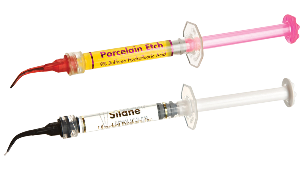 Use Porcelain Etch para el grabado de porcelana o de antiguas restauraciones de composite con macrorrelleno antes de realizar una adhesión y reparación intraoral.