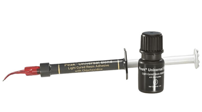 El agente adhesivo monocomponente universal PQ1 se adhiere a la dentina/esmalte, metal colado, porcelana, amalgama y composite. Además, su aplicación desde una jeringa resulta cómodo y seguro a la vez: el agente de adhesión se mantiene fresco hasta la última gota, el solvente no se evapora prematuramente. (Para los casos en los que se requiera un agente de adhesión más fluido, véase Peak LC Bond.)