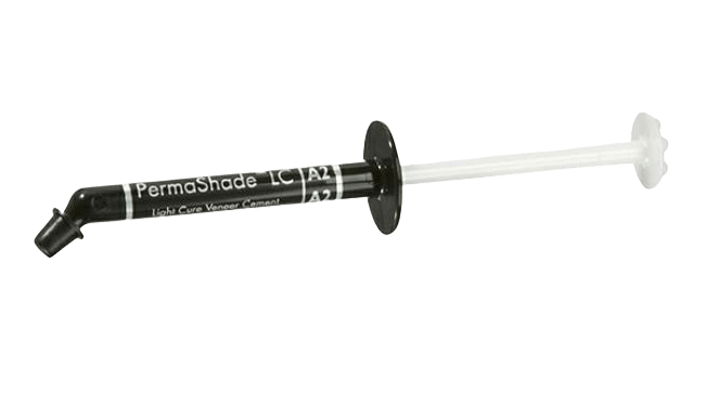 PermaShade LC es una resina cementante fotopolimerizable usada exclusivamente para cementar carillas. Su ergonómica jeringa contraangulada hace que el cementado de carillas sea más práctico que con otros métodos de dispensado. Con una estabilidad de color duradera, baja contracción y altas fuerzas de adhesión, PermaShade LC es ideal para crear una sonrisa estética y duradera con carillas.