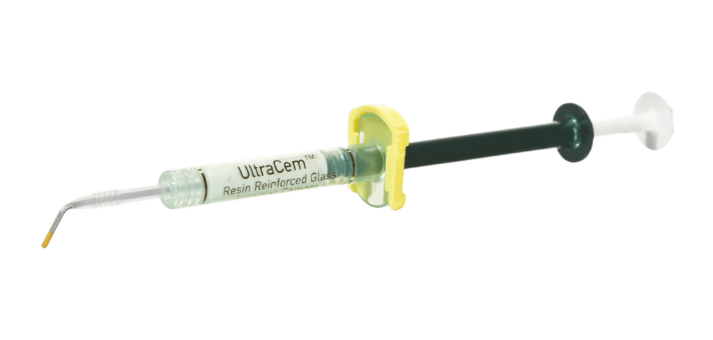 UltraCem ofrece lo mejor de ambos mundos en un cemento adhesivo: dispensado eficiente y un desempeño insuperable. Su avanzada formulación química de autograbado ofrece las mayores fuerzas de adhesión en su categoría, mientras que su exclusiva jeringa SpeedMix™ asegura la máxima conveniencia en adhesión. UltraCem también se encuentra disponible en el avío tradicional de frascos para mezcla a mano, una opción económica que les da a los clínicos control sobre la viscosidad y la cantidad de material a utilizar.