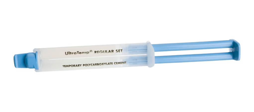 La formulación química de policarboxilato hidrofílico de UltraTemp asegura baja irritación para la pulpa y un sellado de calidad. Es soluble en agua hasta su fraguado para una limpieza sencilla. UltraTemp se sugiere para restauraciones provisionales individuales de rutina o para provisionales preformados estandarizados que deban permanecer en boca de dos a cuatro semanas. Puede ser utilizado también para sellar la abertura de acceso en casos de blanqueamiento no vital ambulatorio.