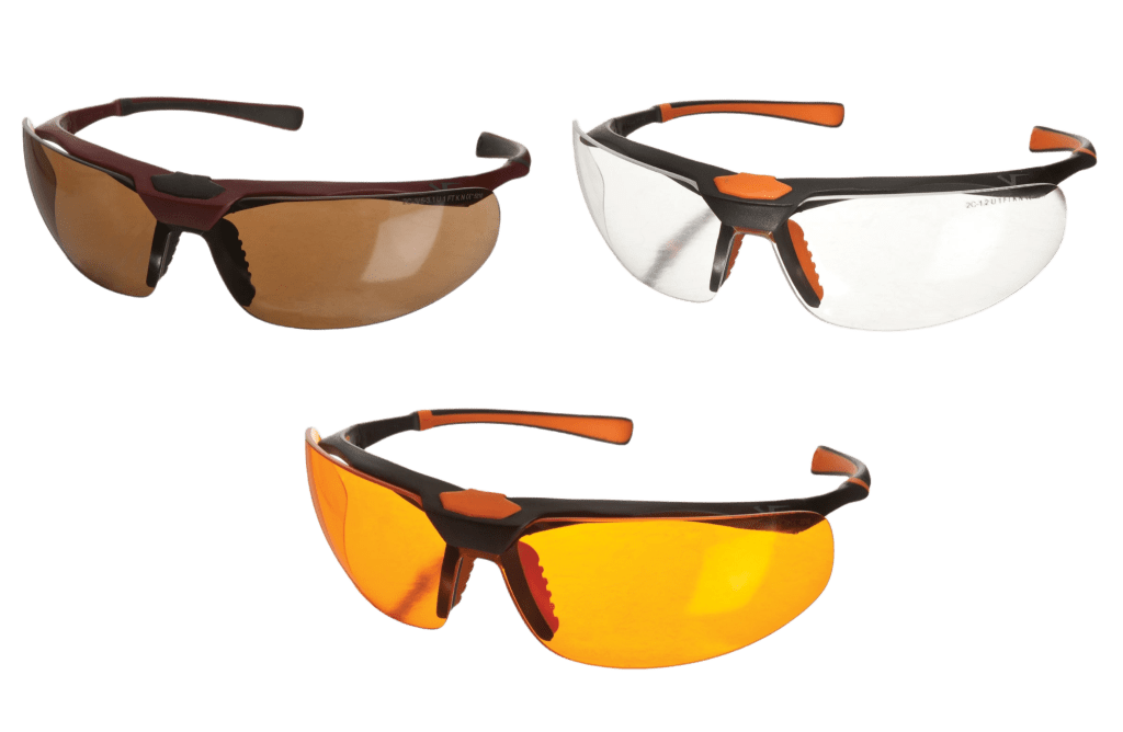 Las lentes de color transparente están diseñadas para proteger al odontólogo y al paciente frente a todo tipo de salpicaduras, especialmente durante los procedimientos de blanqueamiento realizados en la clínica.