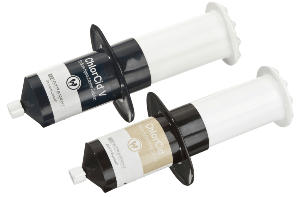 ChlorCid es una solución de hipoclorito de sodio al 3%. Tiene un efecto desinfectante a la vez que disuelve tejidos. ChlorCid es un líquido mientras que ChlorCid V es una formulación más viscosa que permanece en posición incluso en conductos maxilares. Dispensado económico: Rellene jeringas de 1,2 ml de manera rápida y sencilla con las jeringas IndiSpense de 30 ml.