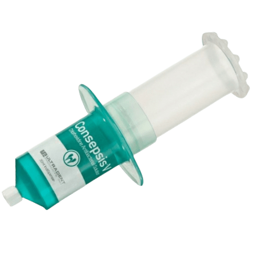 Consepsis V La solución es una formulación viscosa de la solución antibacteriana de clorhexidina al 2% Consepsis ™. La viscosidad de la solución Consepsis V la convierte en el desinfectante perfecto en la mayoría de los casos en los que desea tener más control del que le dará un líquido. La solución Consepsis V se puede utilizar como agente antibacteriano en el (los) canal (es) entre citas.