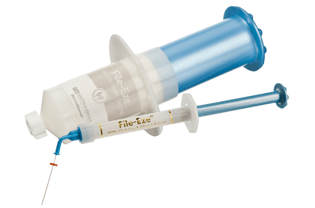 File-Eze es una solución efectiva de EDTA al 19%, viscosa y soluble en agua, para lubricar preparaciones de conductos radiculares. No contiene peróxido, que puede interferir con la polimerización de sellantes a base de resina.