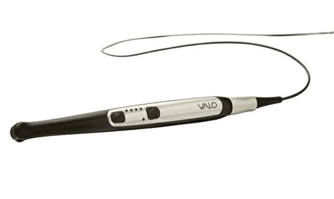 VALO Ortho Cordless utiliza un diodo emisor de luz (LED) de longitud de onda múltiple personalizado para producir una luz de alta intensidad a 385-515nm, que es capaz de polimerizar todos los materiales dentales fotopolimerizables. Esta intensidad también penetrará en la porcelana y es capaz de polimerizar cementos resinosos subyacentes similares a una luz halógena de calidad. VALO Ortho Cordless usa baterías recargables y un cargador de baterías adecuado corrientes de 100 a 240 voltios. La pieza de mano está diseñada para apoyarse en un soporte de unidad dental estándar o puede montarse a la medida utilizando el soporte incluido en el kit. VALO Ortho Cordless está equipado con un sensor que registra el movimiento de la luz; cuando no se utiliza la luz, VALO Ortho Cordless pasará automáticamente al modo de suspensión y cuando se mueva volverá a la configuración utilizada más recientemente.