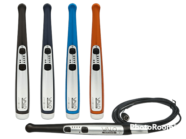 La lámpara de curado con cable VALO Ortho utiliza un diodo emisor de luz (LED) de longitud de onda múltiple personalizado para producir la luz de alta intensidad a 385-515nm capaz de polimerizar todos los materiales dentales fotopolimerizables. Esta intensidad también penetrará en la porcelana y es capaz de curar cementos de resina subyacentes similares a una luz halógena de calidad. La lámpara VALO Ortho alámbrica tiene una fuente de alimentación de grado médico internacional y es adecuada corrientes de 100 a 240 voltios. La pieza de mano está diseñada para apoyarse en un soporte de unidad dental estándar o puede montarse a la medida utilizando el soporte incluido en el kit.