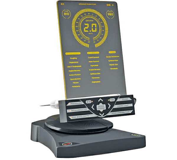 GEMINI 810 + 980 es el primer láser de diodo para tejido blando, diseñado en USA, provisto de una longitud de onda dual y con una potencia máxima de 20 vatios. La longitud de onda dual combina la absorción óptima de melanina con una longitud de onda de 810nm con la absorción óptima de agua con la longitud de onda de 980nm. El láser de diodo GEMINI te permite usar individualmente la longitud de onda deseada dependiendo del tratamiento a realizar. El poder de la tecnología super-pulsed con un pico máximo de potencia de 20 vatios en cortos impulsos, hace que los tejidos blandos se enfríen durante el procedimiento, evitando la carbonización y el stress térmico. Esta tecnología hace que los cortes sean rápidos y eficientes y además facilita la rápida cicatrización de los tejidos.