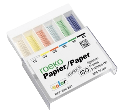 Los puntos de papel HYGENIC son estériles, muy absorbentes y no contienen adhesivos. Están disponibles en diferentes tamaños ISO y con diferentes conicidades. Además, con una codificación de color superior, codificación a todo color o completa en blanco.