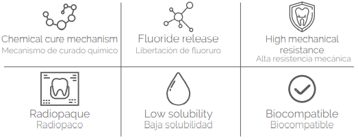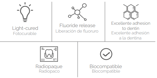 • Indicado para base y revestimiento de cavidades para todos los tipos de de